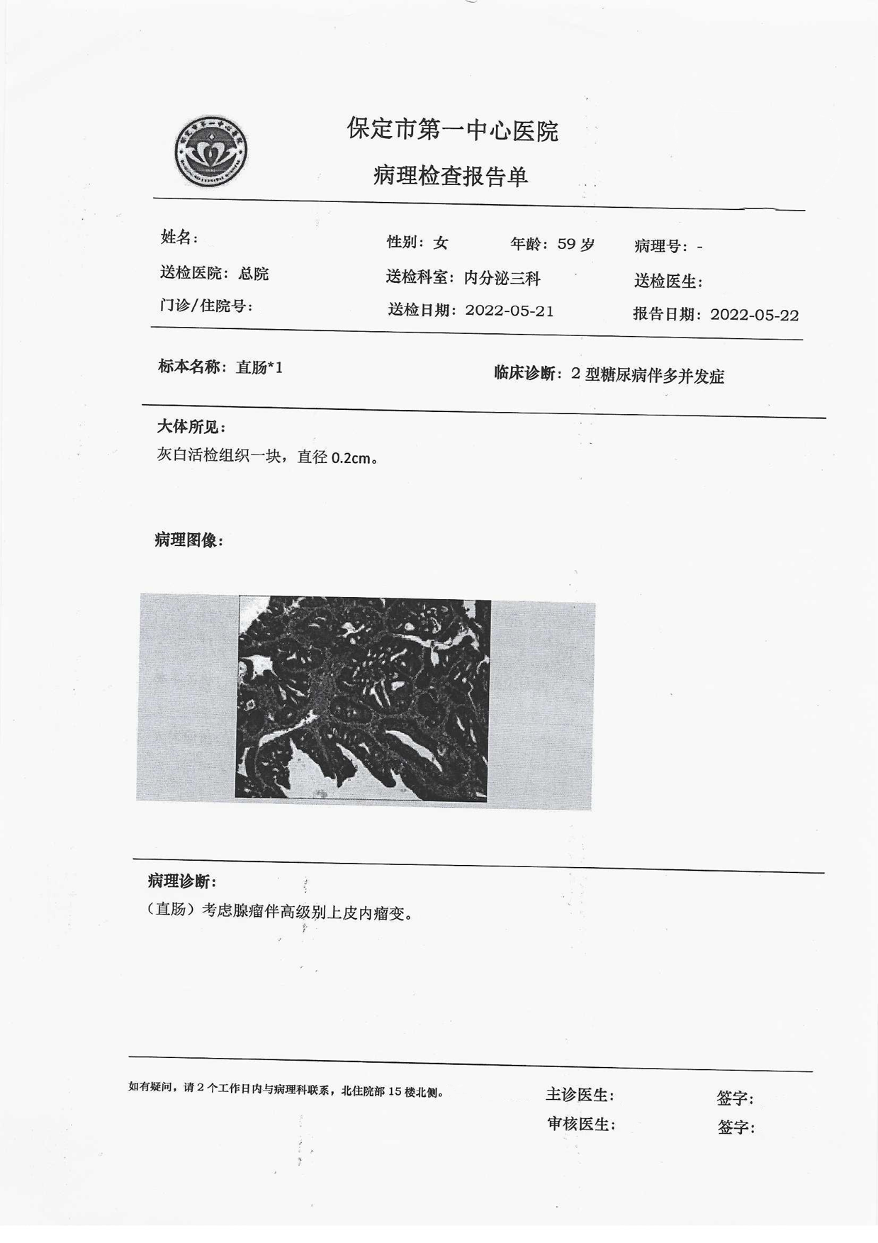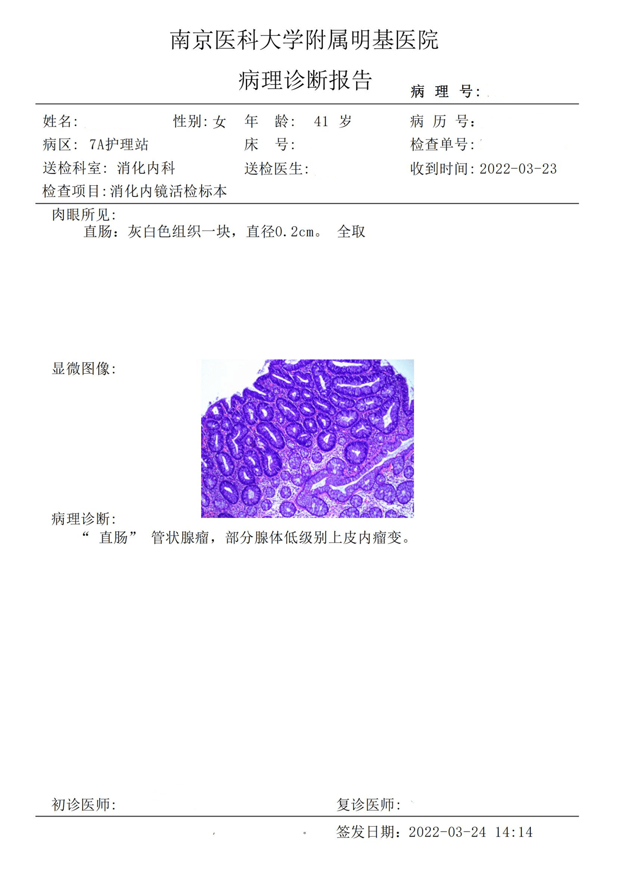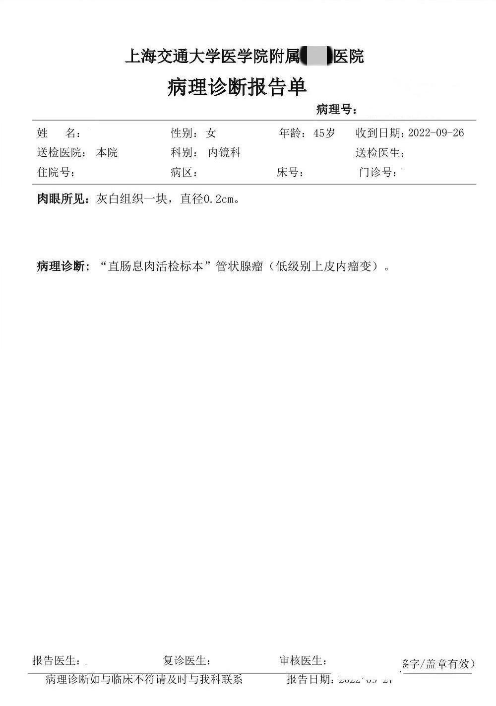 2、(直肠活检)管状腺瘤,建议定期复查。