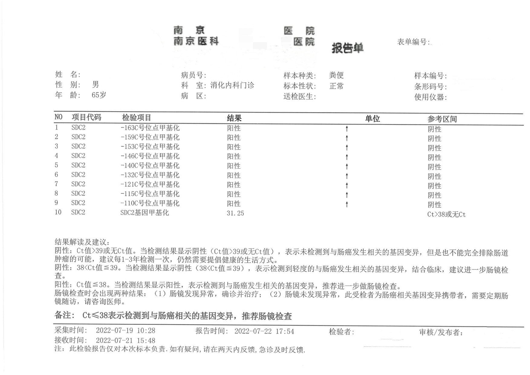 检测时间:2018年7月3日结果:阳性