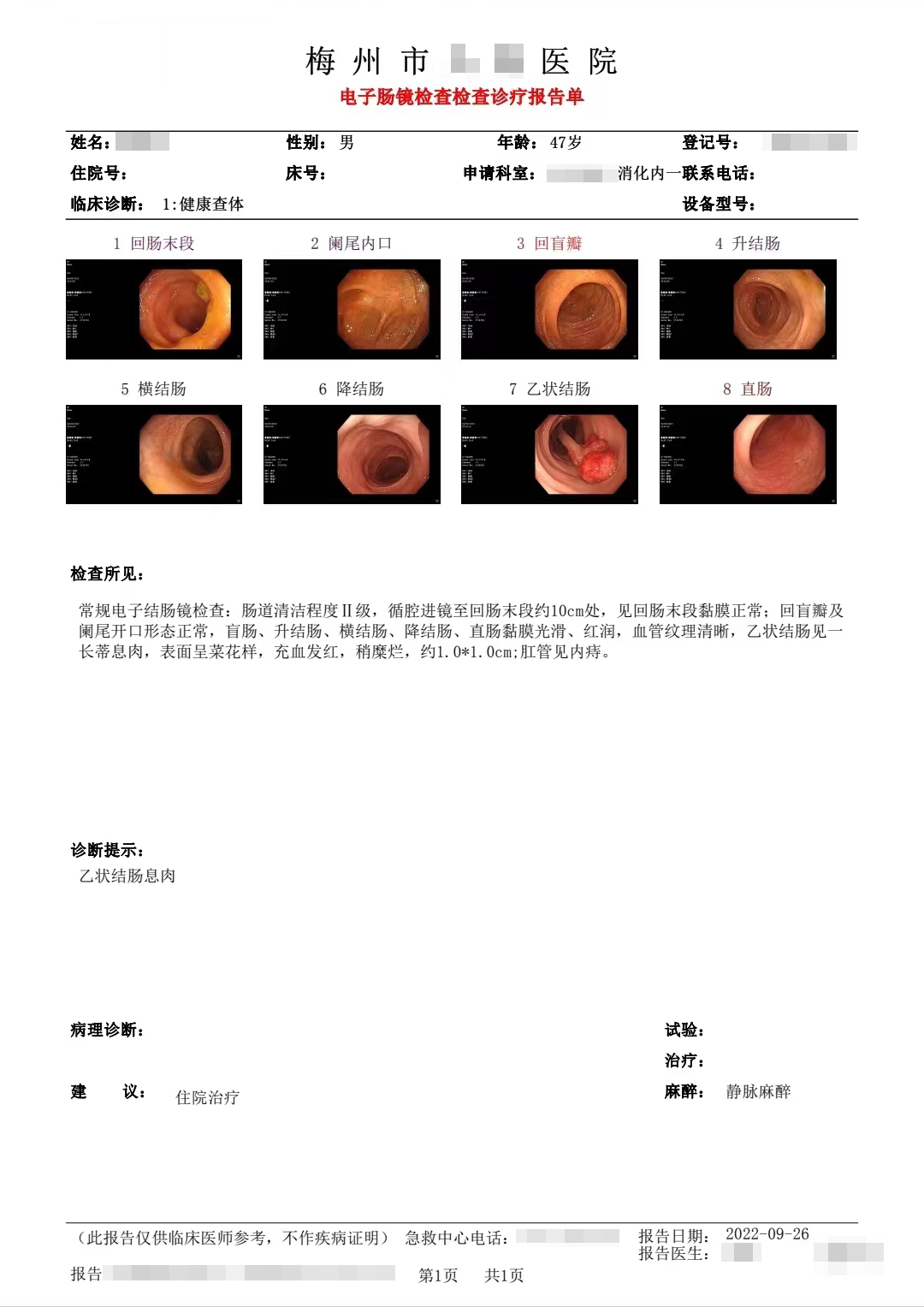 父亲肠镜报告
