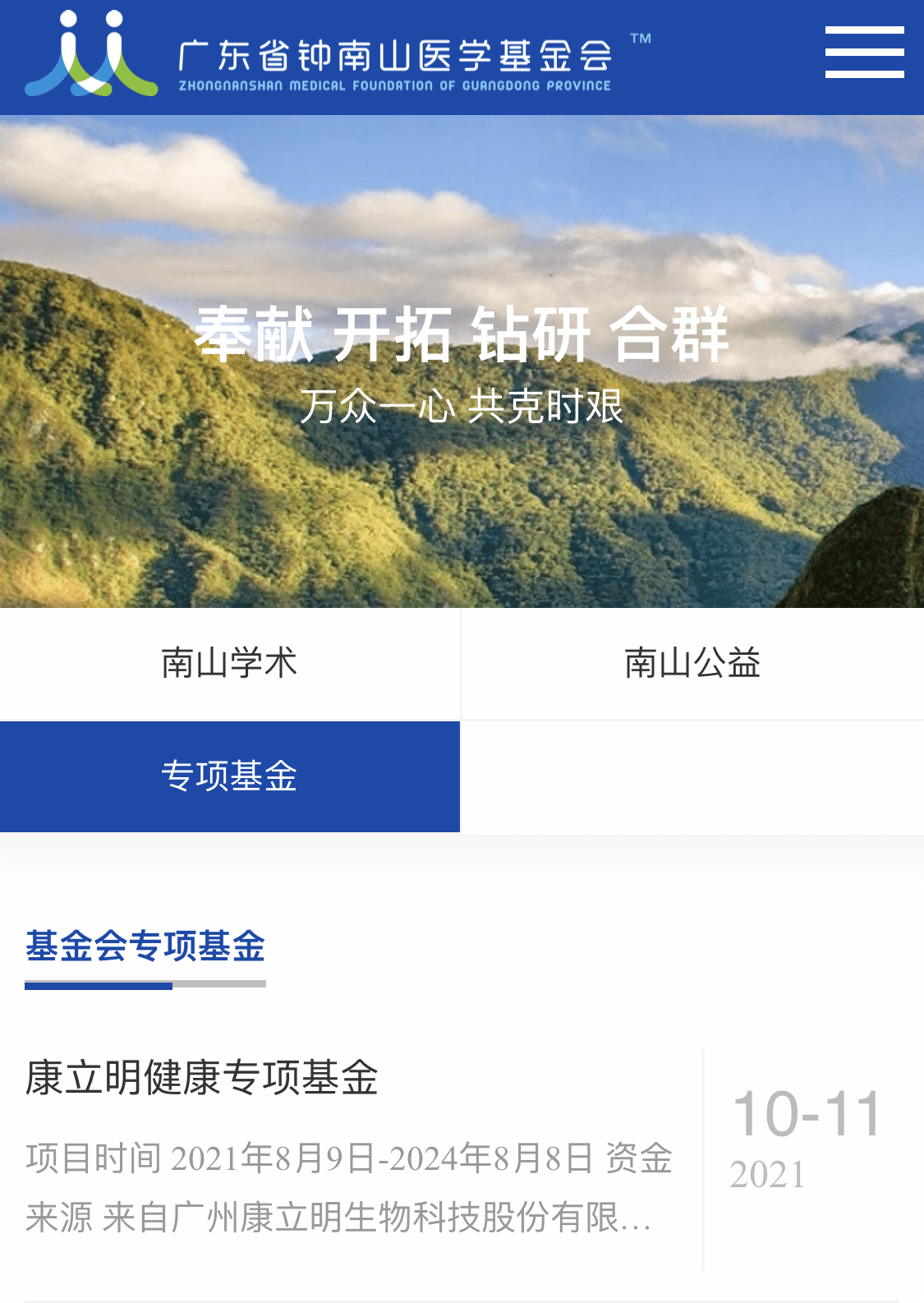 为了积极推动肿瘤精准筛查,响应《“健康中国 2030” 规划纲要》的号召,康立明生物与广东省钟南山医学基金会基于双方在各自业务领域的优势和发展潜力,签署了战略合作协议。通过强强联手、优势互补,共同在健康医疗相关领域深度合作发展。同时,康立明生物与广东省钟南山医学基金会共同设立“康立明健康专项基金”。广东省钟南山医学基金会于10月11日通过官方网站进行了项目公示。