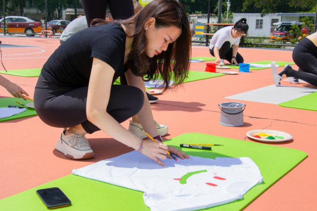 参与活动的普拉提爱好者,还提起画笔,一起在T恤上留下了各种创意的涂鸦,以表达自己对于“爱,要趁早”、“健康与运动”的理解。